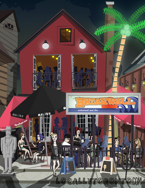 Breakwall just recently opened up in the Beaches. It has a very relaxed Miami-feel and stands out amongst the many other places on Queen because of it's bold colour scheme and giant glowing palm-tree.